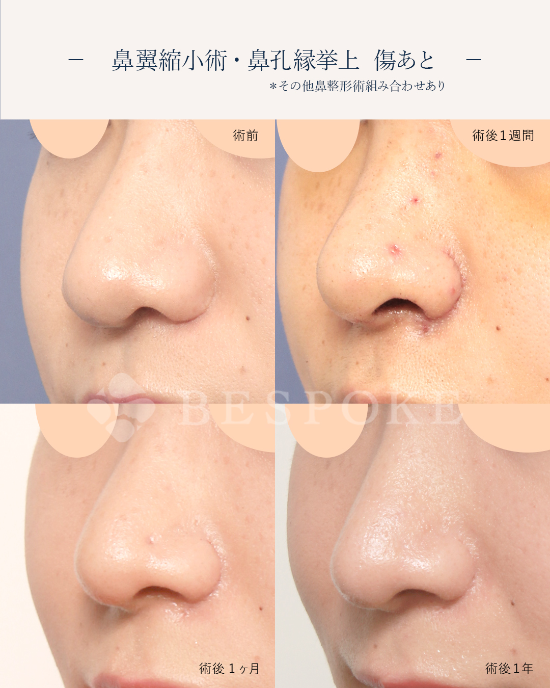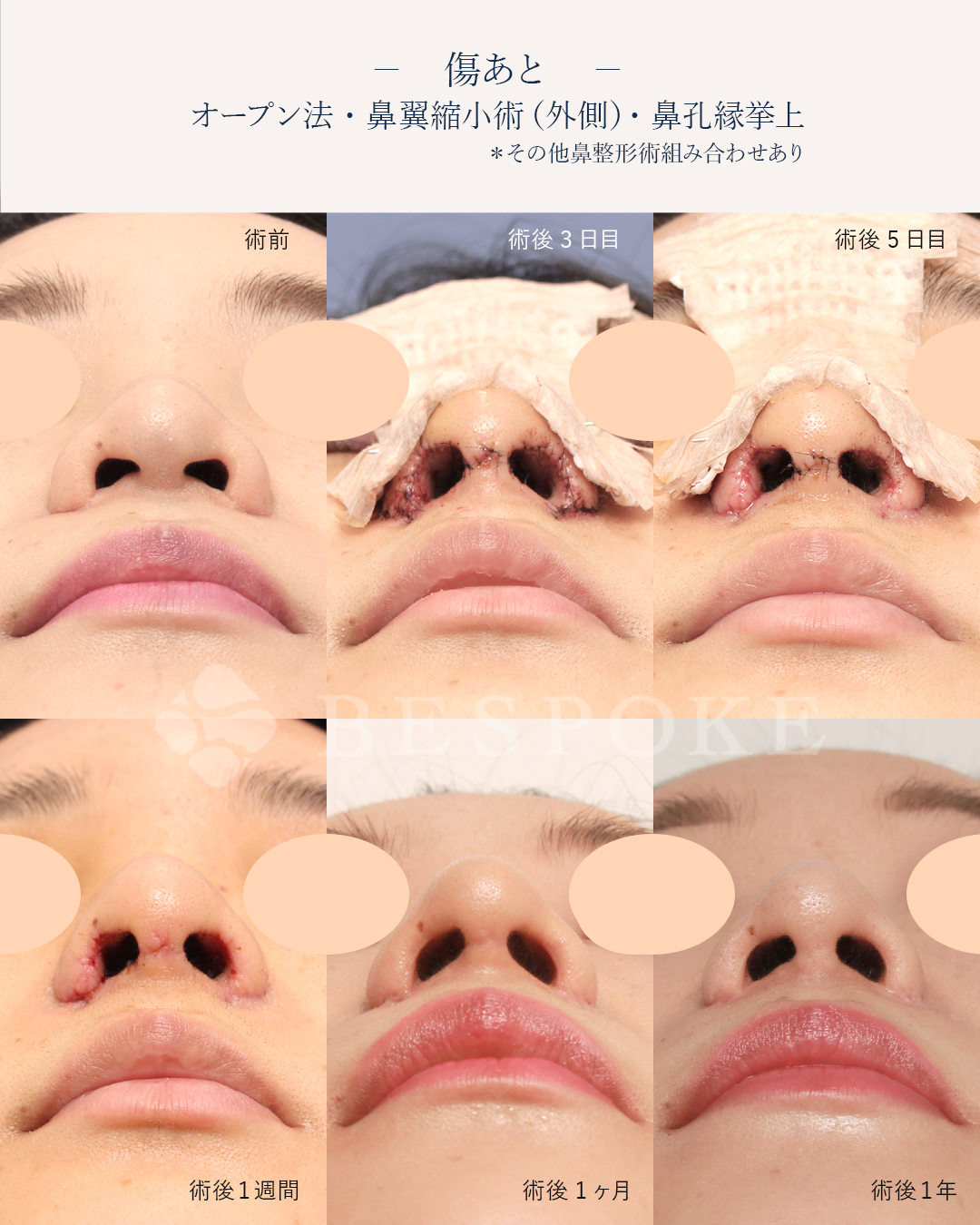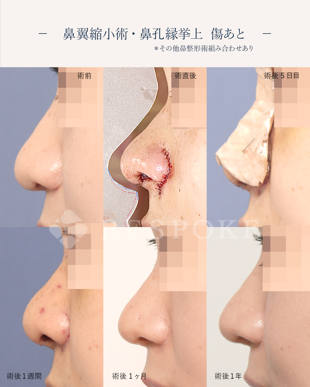 鼻翼拳上、鼻翼縮小、鼻孔緑挙上術、鼻短縮(ワイヤー固定含む)、鼻中隔延長